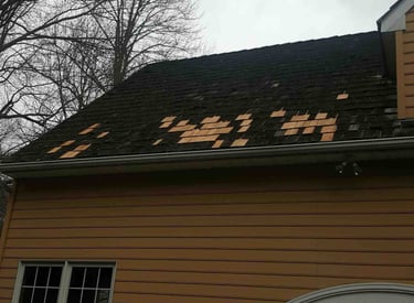 A shingle or shake has shifted or gone missing enough to reduce coverage in one area