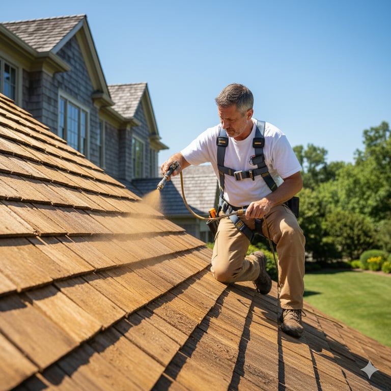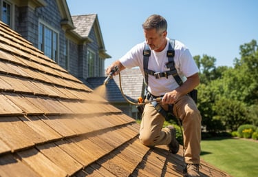 A two-stage process that prepares the cedar, restores essential oils, and keeps your roof aging slowly, evenly, and predictably.